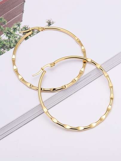 Fashionable Stainless Steel Textured Hoop Earrings For Women For Daily Decoration - Gold - View 1