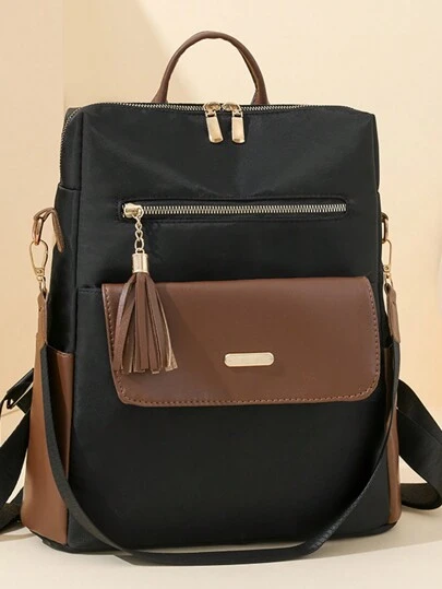 Fashionable Women's Large Capacity Tasseled Anti-Theft Backpack For Travel, School Backpack - Black - View 1