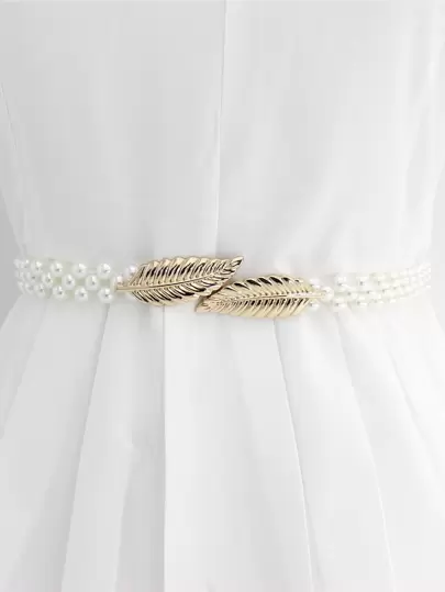 Faux Pearl Beaded Belt Elegant - White - View 1