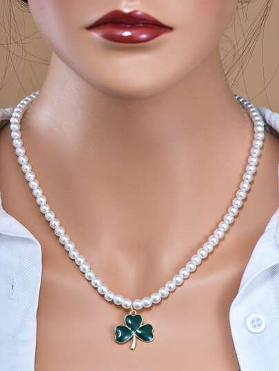 Faux Pearl Decor Clover Pendant Necklace - Multicolor - View 1