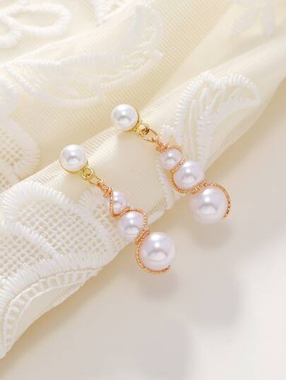 Faux Pearl Decor Drop Earrings - Multicolor - View 1