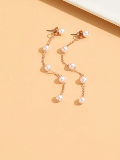 Faux Pearl Decor Earring Jackets - Rose Gold - View 1