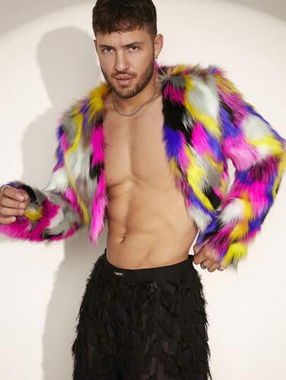 FeverCity Men's Short Fluffy Collar Coat - Multicolor - View 1