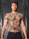 FeverCity Men's Solid Color Mesh Patchwork Long Sleeve Slim Fit T-Shirt, Summer, For Fall
