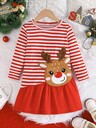 Newborn Baby Girl Gift Set - Dress With Bow, Heart & Stripe Print, With Socks And Headband