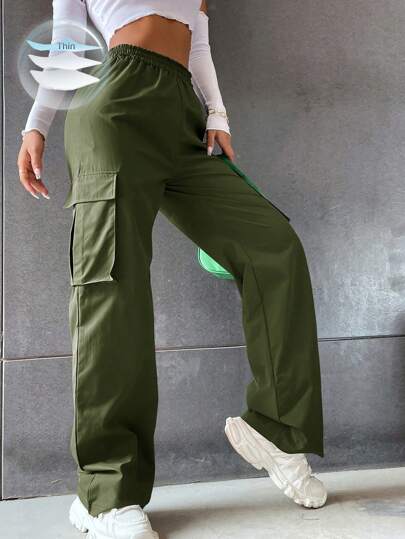 SHEIN LUNE Flap Pocket Side Cargo Trousers - Army Green - View 1