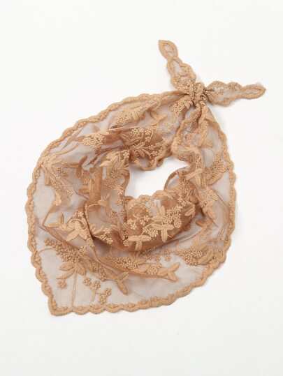 Floral Embroidered Scallop Trim Scarf - Multicolor - View 3