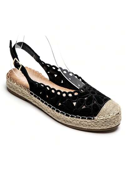 Floral Lace Espadrille Sandals – Elegance And Comfort For Summer - Black - View 1