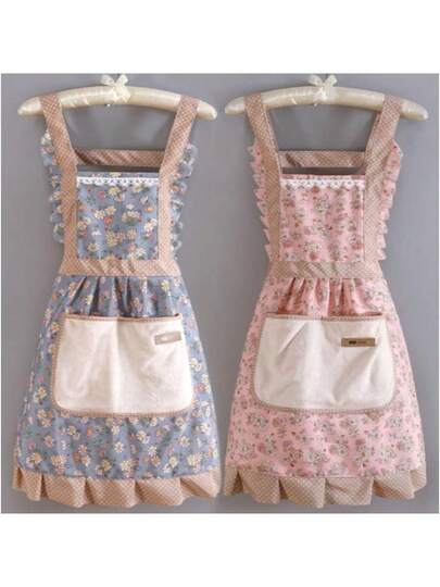 Floral Print Canvas Apron, Princess Style, Breathable, Cute, Pastoral Style, Suitable For Adult Work, Fashionable New Summer Style - Multicolor - View 1