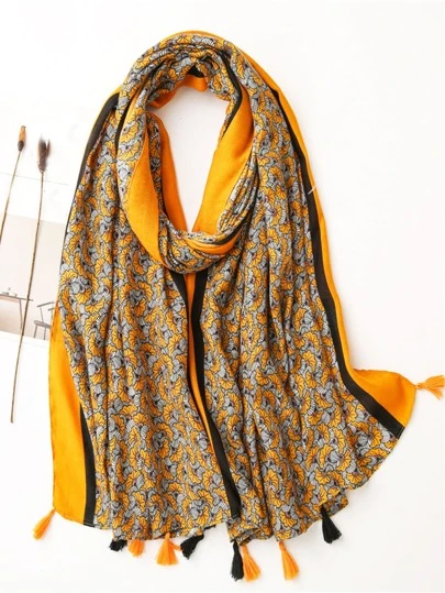 Floral Print Tassel Decor Scarf - Multicolor - View 1