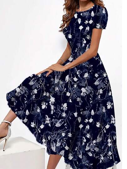 SHEIN LUNE Floral Print Women's Dress - Navy Blue - View 1