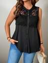 Flouryn Plus Size Women Elegant V-Neck Sequin Lace Patchwork Long Sleeve, Waist Cinched A-Line Long Black Chiffon Maxi Dress Suitable For Party, Gathering
