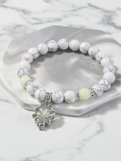 Nooxian 1pc Yoga/Meditation Glow In The Dark Lotus Beaded Bracelet For Women (Random Bead Count) - Multicolor - View 1