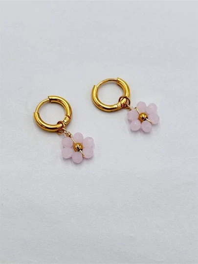 Flower Drop Earrings Valentines - Pink - View 1