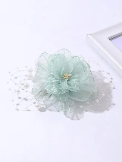 Flower & Faux Pearl Decor Hair Clip - Multicolor - View 1