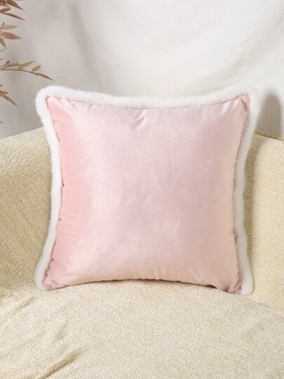 Fluffy Trim Cushion Cover Without Filler - Pink - View 1