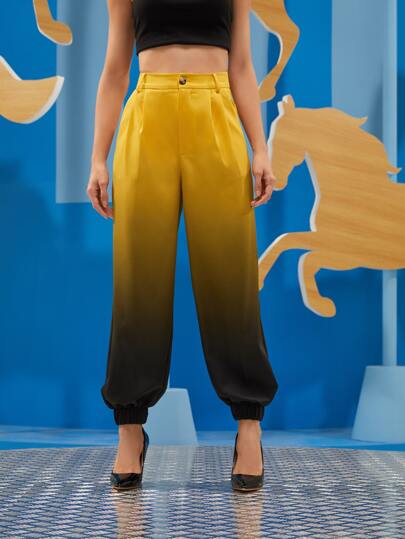 Miss Bos Fold Pleated Ombre Carrot Trousers - Multicolor - View 1