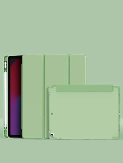 Foldable All-inclusive Pen Slot Waterproof PU Silicone Case Compatible With iPad - Green - View 1