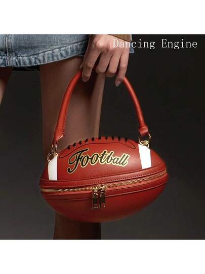 Dancing Engine Football Shaped Handbag, Luxury Designer One Shoulder & Crossbody Round Bag - Brown - View 1