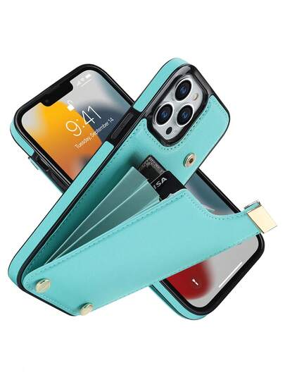 Compatible With IPhone 11 12 13 14 15 Pro Max Luxury Leather Phone Case With Card Slot Stand Covers - Mint Green - View 4