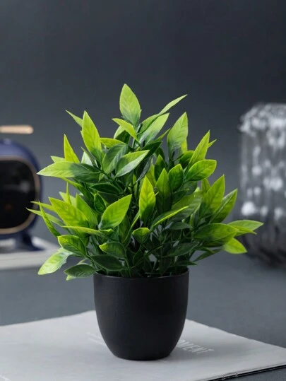 MEHELANY 4/1pc Artificial Small Potted Plant, Plastic Material, Black Planter, Mini Fake Plant, Suitable For Home, Office, Dining Table, Farmhouse, Yard, Bathroom Decor - Black - View 1