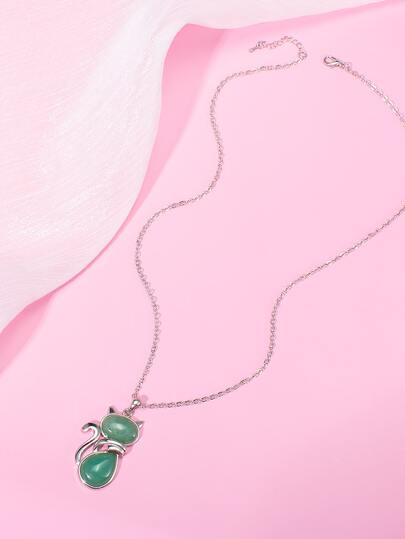 Fox Charm Necklace - Green - View 1