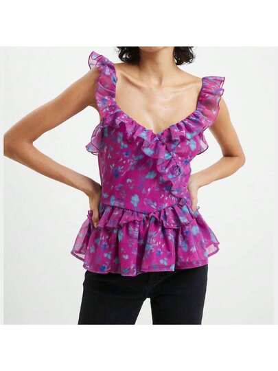 French Connection Aden Bai Lurex Frill Cami Top In Dahlia - dahlia - View 1