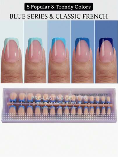 French Tip Press On Nails - Blue Press On Nails Short, Square Fake Nail Tips, 150Pcs Soak Off Soft Gel Acrylic Nail Extension In 15 Sizes, Nail Decorations For Women In Spring And Summer Nail Supplies Nails - Multicolor - View 1