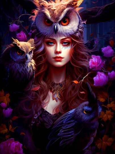 Full Round Diamond Embroidery Owl Fairy Fantasy Diamond Painting Beauty 5D Mosaic Kit Rhinestone Pictures Decor Home - Multicolor - View 1
