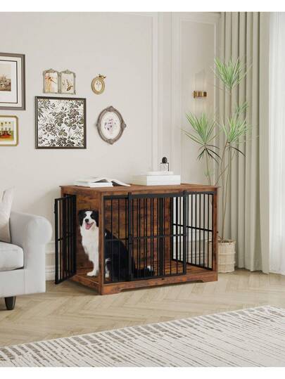 XL Large Dog Crate Furniture, 44.1" Indoor Dog Kennel Furniture With Barn Door, Wooden Tall Dog Crate, Heavy Duty Dog Cage For Large Dogs, Side End Table, Anti-Chew, Dog House, Rustic Brown - Rust Brown - View 9