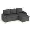 3 Seater Corner Sofa Bed, L-Shaped Sleeper Sectional Couch Bed, 3 In 1 Convertible Pull Out Sofa Bed With Storage Chaise And Cup Holder For Living Room, Linen Fabric , Grey