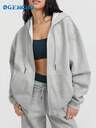 Women's Solid Color Long Sleeve Zipper Front Pocket Hooded Jacket, Autumn