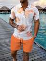 2pcs Men Casual Fashionable Contrast Color Silver Button Decorated Big Pocket Lapel Collar Shirt + Trousers, Spring/Summer Hawaiian Sports Vacation Outfit