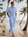 2pcs Men's Casual Solid Color Shirt With Dual Pockets & Collar + Pants Set, Lightweight Sporty Vacation Outfit, Spring/Autumn