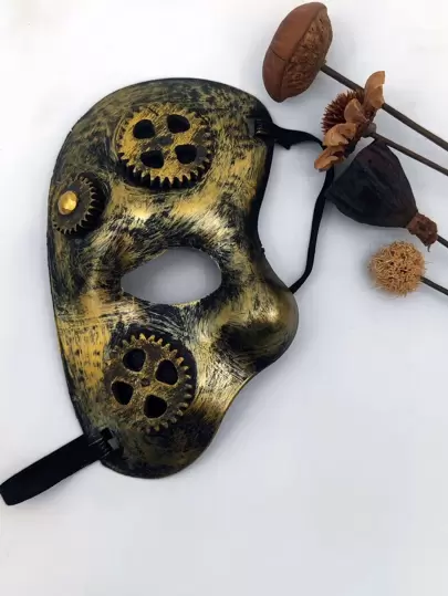 Gear Decor Costume Face Shield - Gold - View 1
