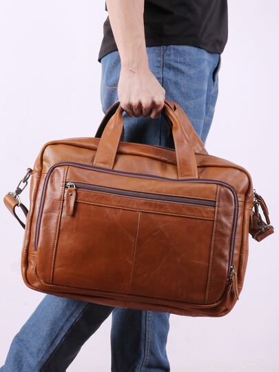 Genuine Leather Men's Briefcases Laptop Bag Large Capacity Business Messenger Bag - Brown - View 1