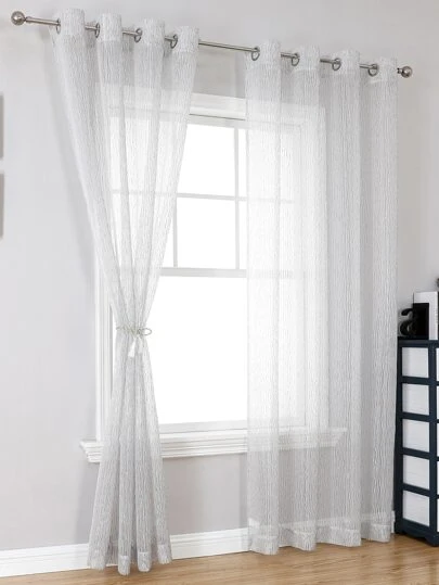 Geometric Pattern Single Panel Sheer Curtain - Light Grey - View 8