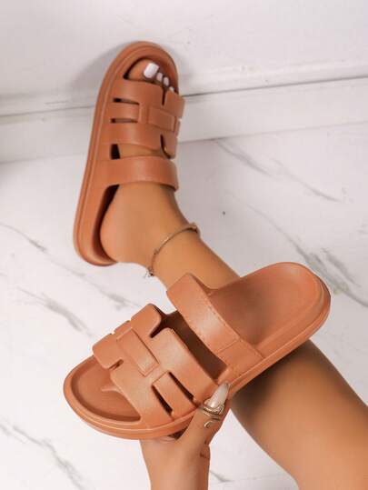 Girl's Fashion Simple Comfortable Shower Slippers, Versatile Teens All Season Slippers - Brown - View 1