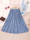 SHEIN Girlism Tween Girl Casual Pleated Skirt, Suitable For Spring/Summer Vacation Light Blue Skirt Ruffle Skirt Baby Blue Skirt Skirts For Teen Girls Cute Skirt Fall Winter Light Blue Skirt Girls Teen Ruffle Skirt