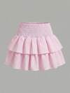 SHEIN Girls' Casual Fashionable Versatile Cake Skirt, Pure White Textured Fabric, Flounced Hem, Suitable For Daily Outings, School, Commuting, Shopping Summer Skirt White Ruffle Skirt Skirt Short