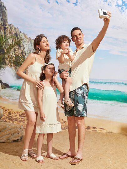 Girls 1pc Guipure Lace Insert Cami Dress - Apricot - View 1