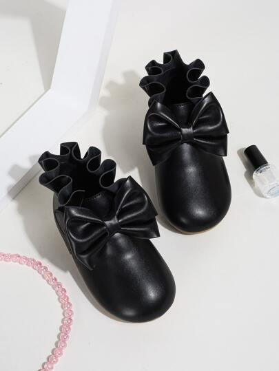 Girls Bow Decor Ruffle Trim Boots - Black - View 1