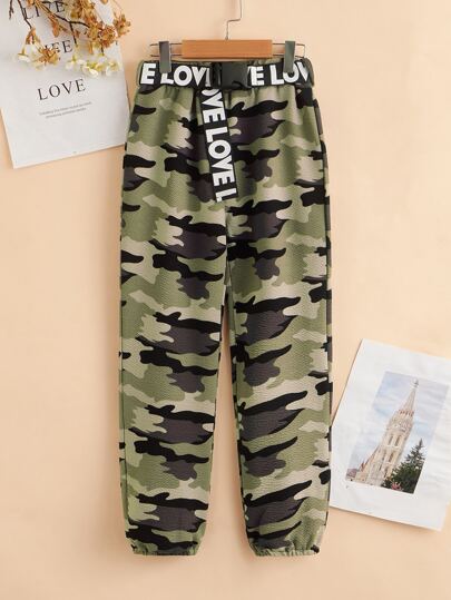 Girls Camo Print Belted Joggers - Multicolor - View 1