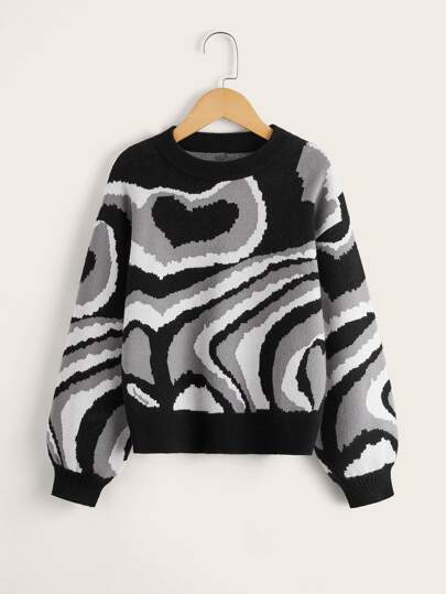 Girls Heart Pattern Lantern Sleeve Jumper - Multicolor - View 1