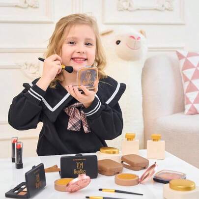 Girls Pretend Makeup Set, Luxury Makeup Simulation Fashion Toy Kit - Includes Realistic Lipstick, Eyeshadow, Brushes And More. Some Components Sent Randomly - Multicolor - View 1