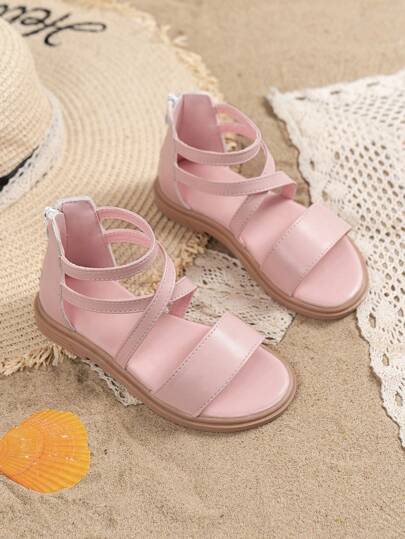 Girls' Roman Sandals Flat Cross Straps Fashionable And Versatile Princess Style Gladiator Sandals For Summer - Pink - View 1