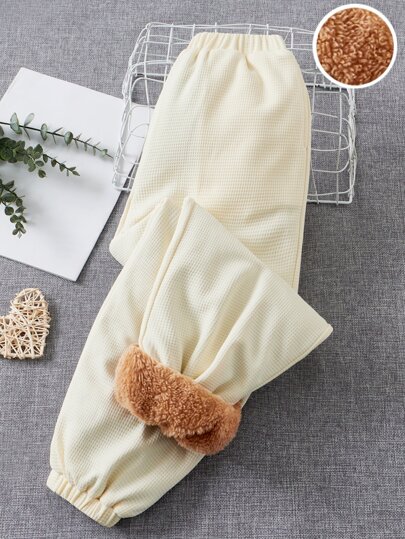 SHEIN Girls Solid Fluffy Joggers - Beige - View 1