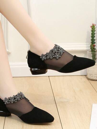 Glamorous Black Flats For Women, Rhinestone Decor Faux Suede Point Toe Flats - Black - View 1