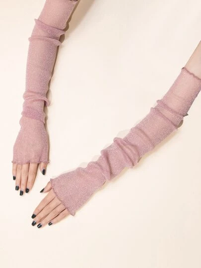 1pair Women's Glittering See-through Party Dressing Decorative Long Gloves - Pink - View 1