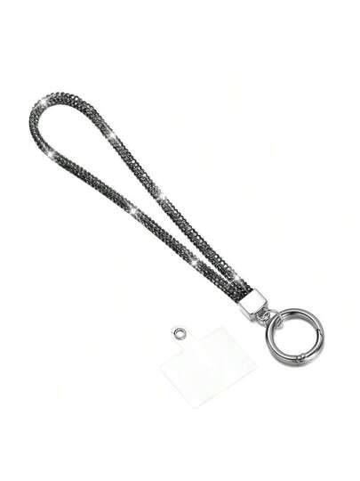 Glitter Rhinestone Phone Lanyard Phone Rhinestone Crystal Wrist Straps Keychain Hanging Anti-lost Rope - Black and White - View 1